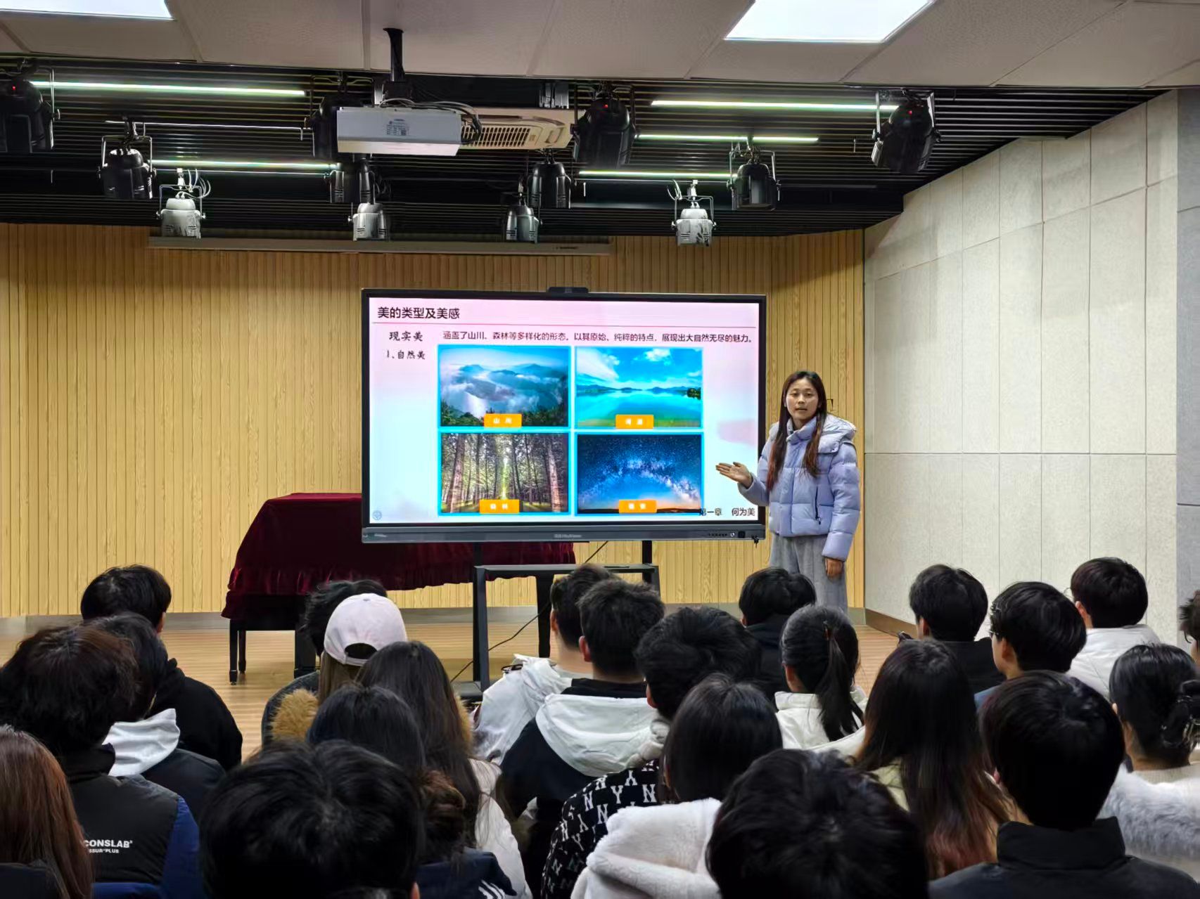 2025年11月3日,我校“陕工艺堂”系列活动再启美育新篇,一场以“美的分类及美感”为主题的专题讲座在明德堂举行。本次活动由美育部教师丁玲主讲,大学生艺术团学子齐聚一堂,在系统的理论阐释与鲜活的案例赏析中,探寻美的多元形态,体悟美感的深层内核,为艺术创作与审美实践筑牢理论根基。