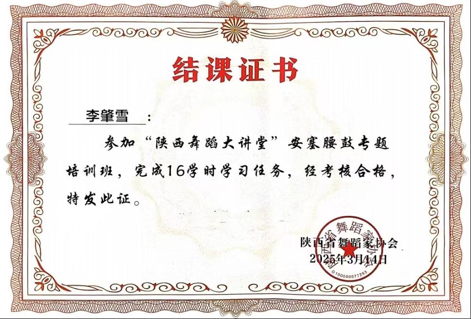 2025年3月13日至14日,我校美育部教师李肇雪赴陕西省文化馆(曲江馆区)参加由陕西省舞蹈家协会主办的“陕西舞蹈大讲堂——安塞腰鼓专题培训班”,此次培训班吸引了全省数十名舞蹈艺术从业者参与。