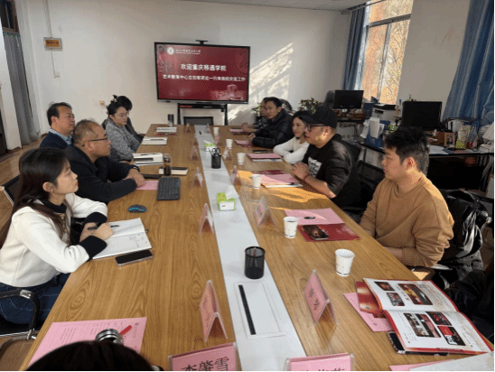会上,毛建芳主任对重庆移通学院7位教师的到来表示热烈欢迎,并围绕我校美育工作整体规划,详细介绍了部门工作机制、师资梯队建设、大学生艺术团运营管理、美育课程体系构建及校园美育活动开展等方面的经验做法与成效亮点。重庆移通学院邹贤达主任对我校美育工作取得的显著成果给予高度评价,随后介绍了该校美育工作的发展现状、特色举措及当前面临的实际挑战。双方聚焦术实践平台搭建、美育资源共享等核心议题展开了深入交流与探讨,相互分享宝贵经验,凝聚发展共识。