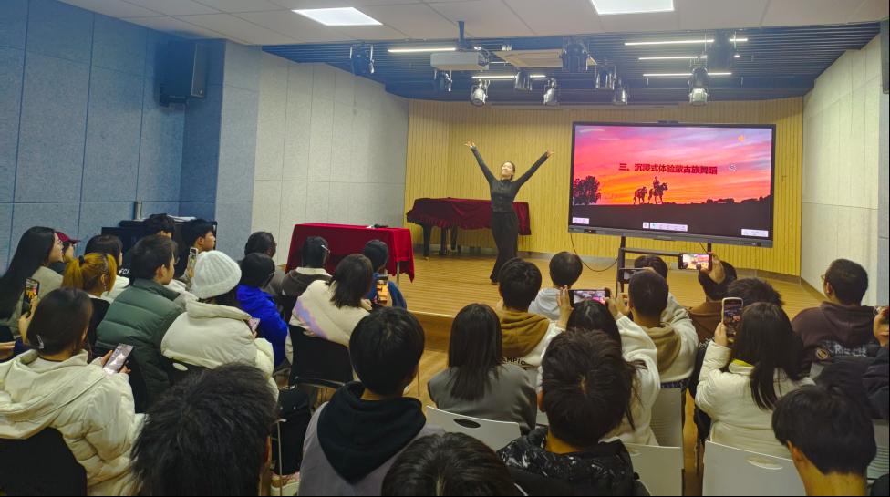 为贯彻落实习近平总书记文艺工作座谈会上的讲话精神,以美育人、以文化人,弘扬中华美育精神,提升我校学生的文化艺术素养,美育部举办“陕工艺堂”系列活动之“舞蹈讲堂”以“中国民族民间舞蹈——蒙古族舞蹈”为主题进行了一场沉浸式舞蹈体验。