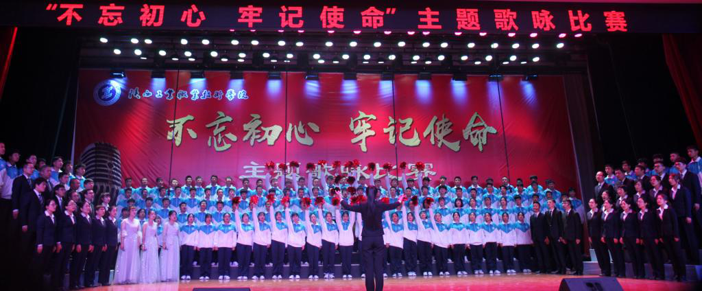 在庄重祥和的气氛中,十个二级学院合唱队依次登场。按照参赛要求,每个参赛队演唱两首歌曲,一首为必唱歌曲《陕西工业职业技术学院校歌》,一首为自选歌曲。在比赛中每个参赛队都做了精心准备,采取朗诵、领唱、舞蹈、情景表演等多种表演方式,给评委和观众留下了深刻的印象。十支参赛队轮番亮相,他们用歌声角逐,倾情献唱,展示出了我院师生蓬勃的朝气,昂扬的锐气;他们纵情高唱,唱出青春的气慨,心中的豪迈;用优美的歌声抒发了对党和祖国的热爱之情,充分展现出青春力量与坚定信念。台上歌声嘹亮,台下掌声阵阵,整个明德堂洋溢着高涨的比赛激情和观赛热情,参赛者的奋力表演,观众的大声叫好,把不忘初心牢记使命的活动主题推向高潮,并成为激励广大师生不断前进的精神动力。