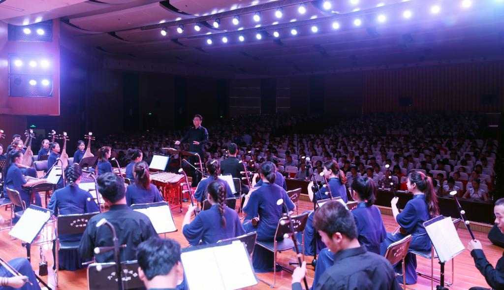 音乐飞翔,掌声雷动,为了营造浓厚的文化氛围,喜迎党的十九大,9月29日晚,我院明德堂响起了陕西艺术职业学院民族管弦乐团的金色旋律,由教育部、文化部、财政部主办,陕西省教育厅协办的“2017年高雅艺术进校园”巡回演出走进我院,为我院师生送来了一席清爽高雅的艺术盛宴。副院长杨卫军、纪委书记康强、各处级单位负责人、教师代表及1100余名学生共同观看了演出。