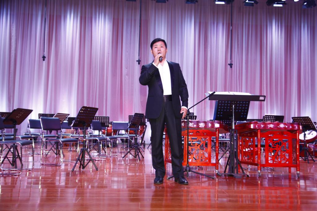 音乐会荟萃了耳熟能详的中华民族经典作品,包括管弦乐、竹笛与乐队、古筝与中阮、唢呐独奏、二胡齐奏、秦腔、独唱等10个曲目。一曲管弦乐合奏《情怀》为整场演出拉开序幕。竹笛与乐队合奏《秦川笛韵》以心音化作笛韵,寄真情赞美秦川,节奏倏忽多变;秦腔清唱《白蛇传》、《三滴血》选段让观众们体会戏曲民族文化瑰宝的同时,多层次感受了剧中人物丰富的精神世界;古筝与中阮合奏《酒狂》以酒徒大醉之后的狂态为主题,表现出狂放、浪荡、不羁的琴曲;乐声时而高亢,时而悠扬,无不淋漓尽致地展示了演奏者们高超的技艺,同时也深深地感染了现场观众。男声独唱《归来的星光》、《两地曲》悠扬婉转、雄浑有力,把演出推向了高潮。接下来的唢呐独奏《黄土情》则表现出老陕人自古以来刚中带柔的性格特点,给观众们带来了别样的艺术熏陶;二胡独奏《战马奔腾》情深意浓,用纯净的旋律将我院师生带入了高雅音乐殿堂。管弦乐合奏《韩城情韵》结束后,乐团指挥张栋老师对二胡、扬琴等乐器做了简洁介绍,并由演奏家一一示范演奏,使现场师生增加了对民族乐器的了解。最后,演出在激昂的管弦乐合奏《好汉歌》中落下帷幕。