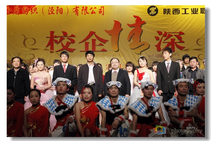 颁奖仪式结束后,演出在我院大学生艺术团管乐团演奏的雄劲的乐曲《前进组曲》中拉开序幕,接下来金盾纺织公司带来的独舞《雪中梅》,我院艺术团学生表演的粗犷唯美的舞蹈《牵魂》,纺织染化学院学生富有青春气息的现代舞表演,赢得了阵阵热烈掌声,金盾纺织公司表演的小品、配乐诗朗诵,舞蹈《洗衣歌》等节目精彩的演绎,展现了金盾纺织职工的风采,给整场演出增添了很多亮点,演出现场高潮迭起,感染了每位观众,台上台下,相呼应和,掌声喝彩声连成一片。接着,诙谐、幽默的三句半、欢快、活泼的男女生二重唱,精准独到、灵动有力的武术表演,更是给现场观众留下了深刻印象。最后,晚会在热情奔放、具有浓郁黄土地气息的舞蹈《天地秧歌》中演出落下帷幕。演出结束后,金盾纺织有限公司和学院领导上台与演职人员合影留念。
