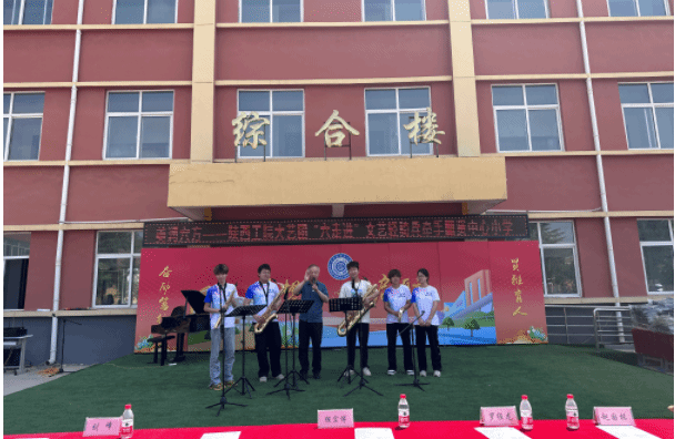 在轻松愉快的交流环节中,付胜利教授以"感受艺术之美"为主题,通过生动有趣的互动方式,向师生们讲解了音乐、舞蹈、绘画、书法等艺术形式的美学特征。随后,演出在现代舞《跳跃吧!青春DNA》的活力演绎中正式开场。女声独唱《七月的草原》以优美的旋律展现了声乐艺术的美;武术表演《中华武魂》刚柔并济,诠释了传统武术的艺术魅力;小品《你的模样》则通过戏剧艺术的表现力,传递出温暖人心的力量;管乐四重奏《啤酒桶波尔卡》用欢快的节奏带领师生感受音乐艺术的韵律美。演出结束后,艺术团成员分组指导中心小学学生体验不同艺术形式:舞蹈团学生带领孩子们学习基础舞步,合唱团学生指导孩子们演唱,书法社团学生则指导孩子们书写毛笔字。